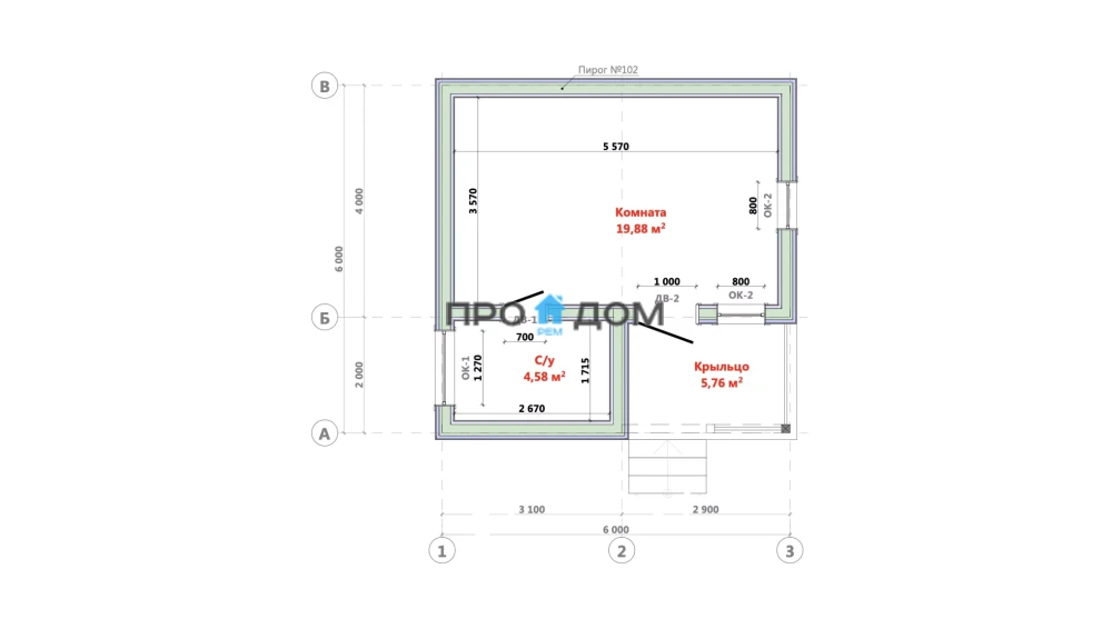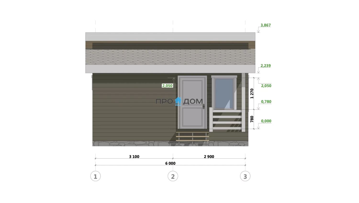 Каркасный одноэтажный дом ПО-201 – прекрасный объект для круглогодичного проживания. Снеговая/ветровая нагрузка уровня 1 этаж делает постройку надёжной в любую погоду. Площадь дома составляет 36 м², что позволит разместить всю необходимую мебель и предметы интерьера. Размеры дома 6.0 x 6.0 м экономят место на участке, чтобы вы могли освоить свободное пространство по своему вкусу.