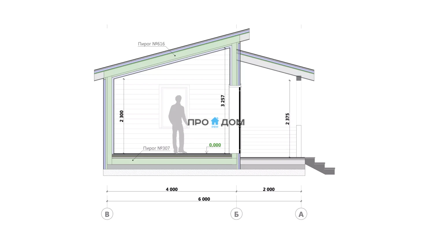 Наружные стены каркас с утеплителем, ветро- и пароизоляцией, с внешней обшивкой техническим материалом (ОСП/доска) под последующую отделку фасада.