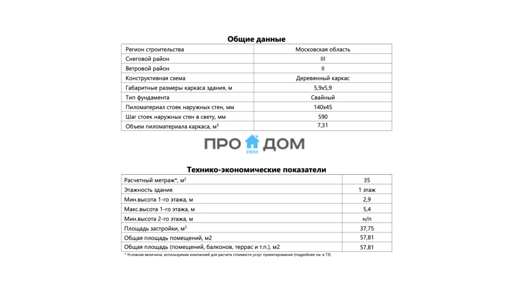 Каркасный одноэтажный дом ПО-480 – прекрасный объект для круглогодичного проживания. Снеговая/ветровая нагрузка уровня 1 этаж делает постройку надёжной в любую погоду. Площадь дома составляет 35 м², что позволит разместить всю необходимую мебель и предметы интерьера. Размеры дома 5.9 x 5.9 м экономят место на участке, чтобы вы могли освоить свободное пространство по своему вкусу.