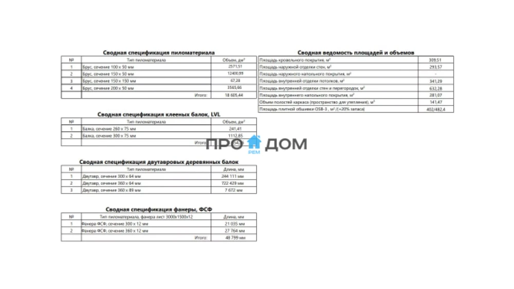 Объем пиломатериала для силового каркаса