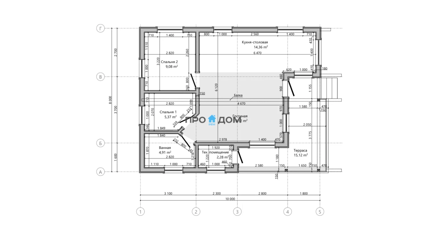 Каркасный одноэтажный дом ПО-898 – прекрасный объект для круглогодичного проживания. Снеговая/ветровая нагрузка уровня 1 этаж делает постройку надёжной в любую погоду. Площадь дома составляет 82 м², что позволит разместить всю необходимую мебель и предметы интерьера. Размеры дома 10 x 8 м экономят место на участке, чтобы вы могли освоить свободное пространство по своему вкусу.