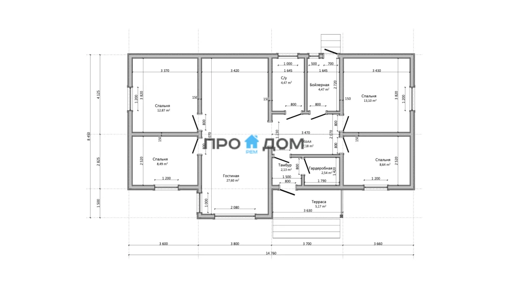 Каркасный одноэтажный дом ПО-512 – прекрасный объект для круглогодичного проживания. Снеговая/ветровая нагрузка уровня 1 этаж делает постройку надёжной в любую погоду. Площадь дома составляет 114 м², что позволит разместить всю необходимую мебель и предметы интерьера. Размеры дома 14.76 x 6.95 м экономят место на участке, чтобы вы могли освоить свободное пространство по своему вкусу.