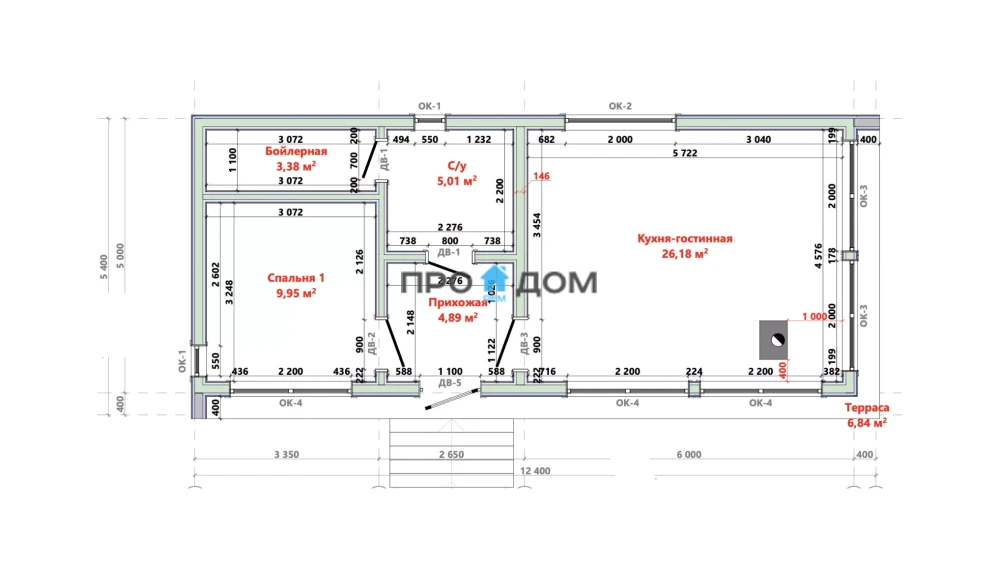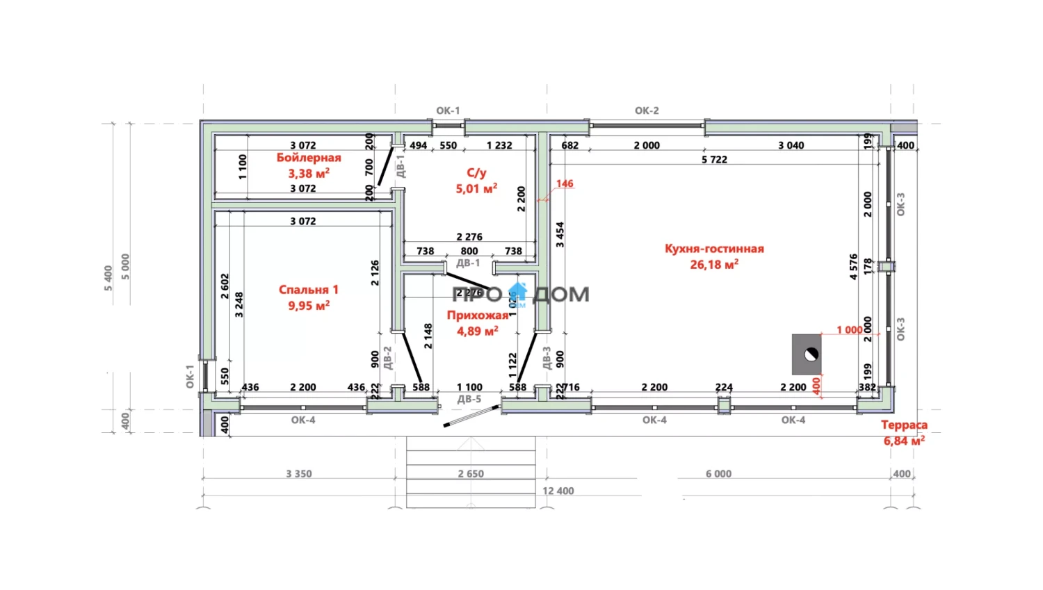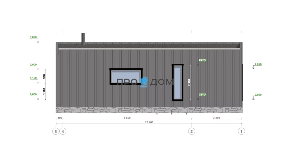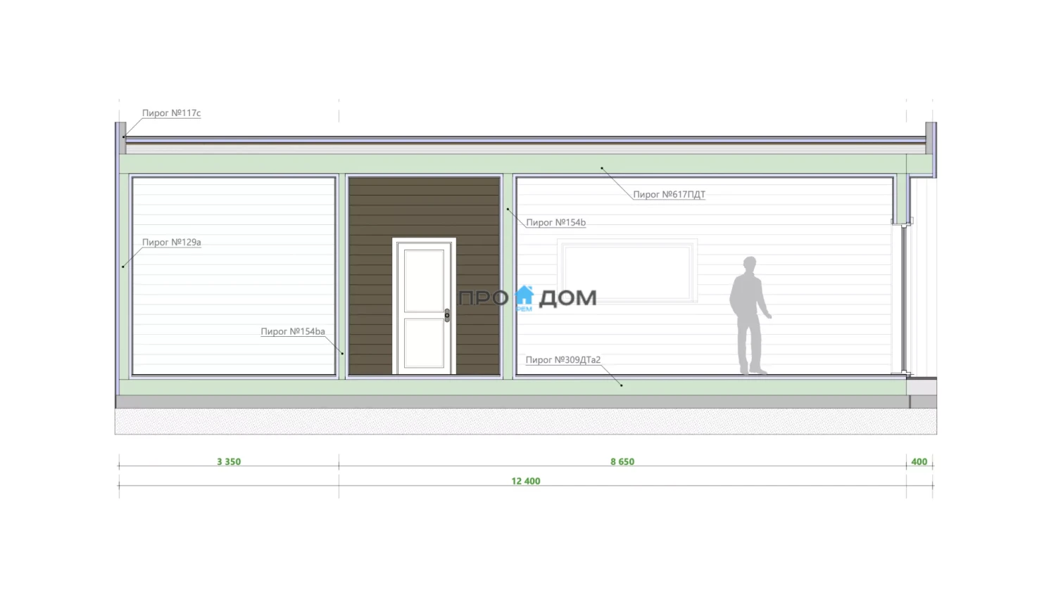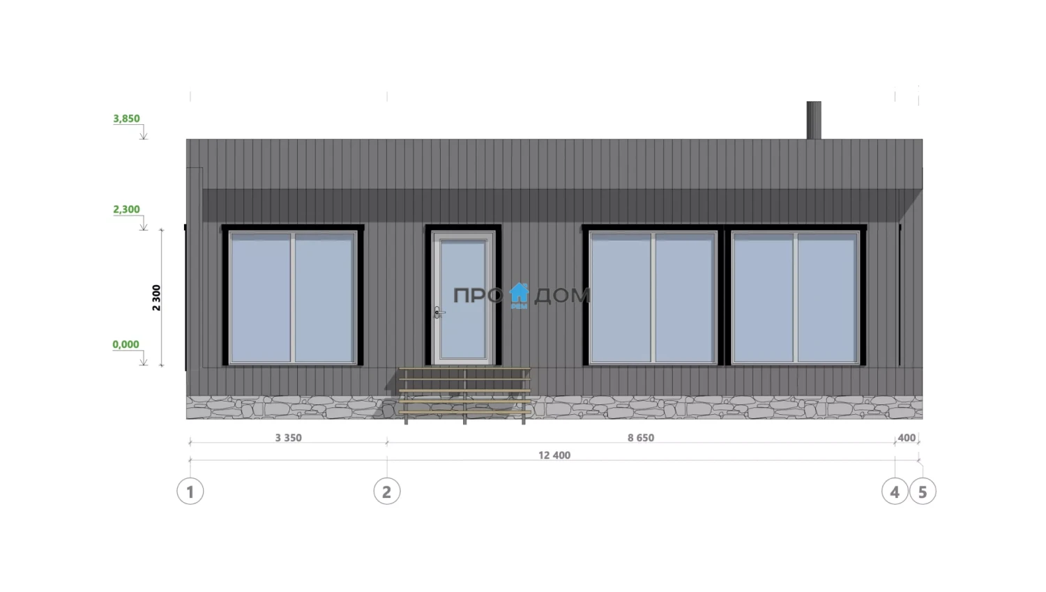 Каркасный одноэтажный дом ПО-587 – прекрасный объект для круглогодичного проживания. Снеговая/ветровая нагрузка уровня 1 этаж делает постройку надёжной в любую погоду. Площадь дома составляет 67 м², что позволит разместить всю необходимую мебель и предметы интерьера. Размеры дома 12.4 x 5.4 м экономят место на участке, чтобы вы могли освоить свободное пространство по своему вкусу.