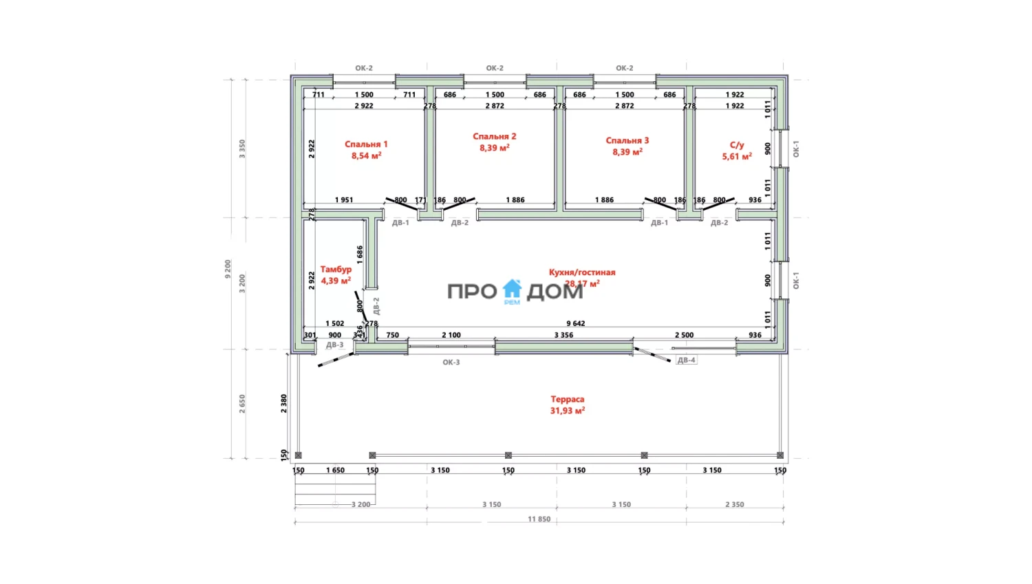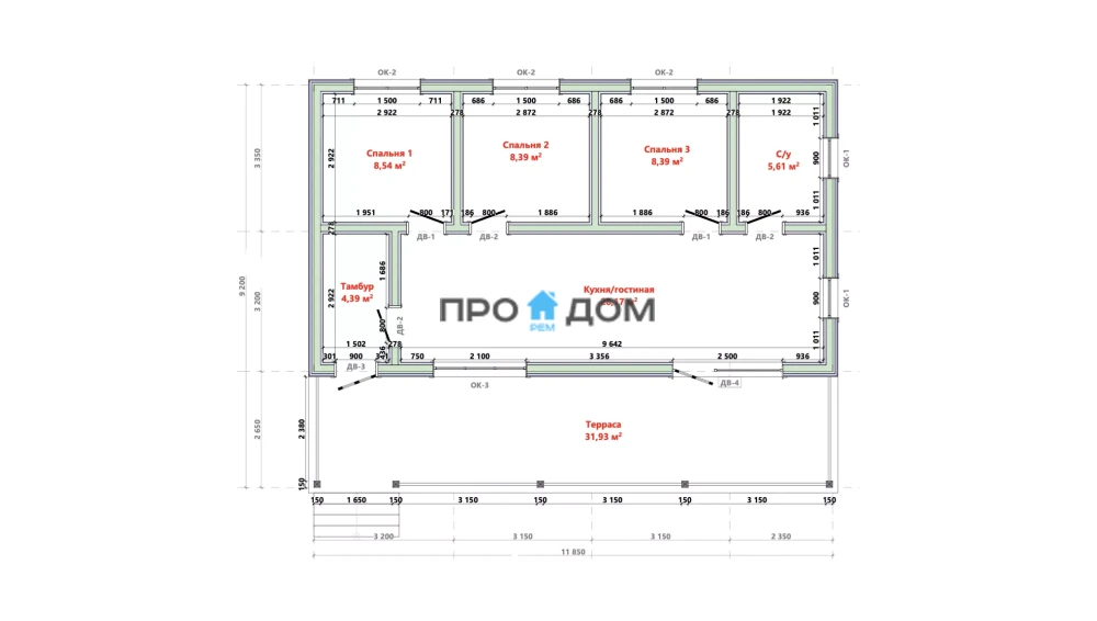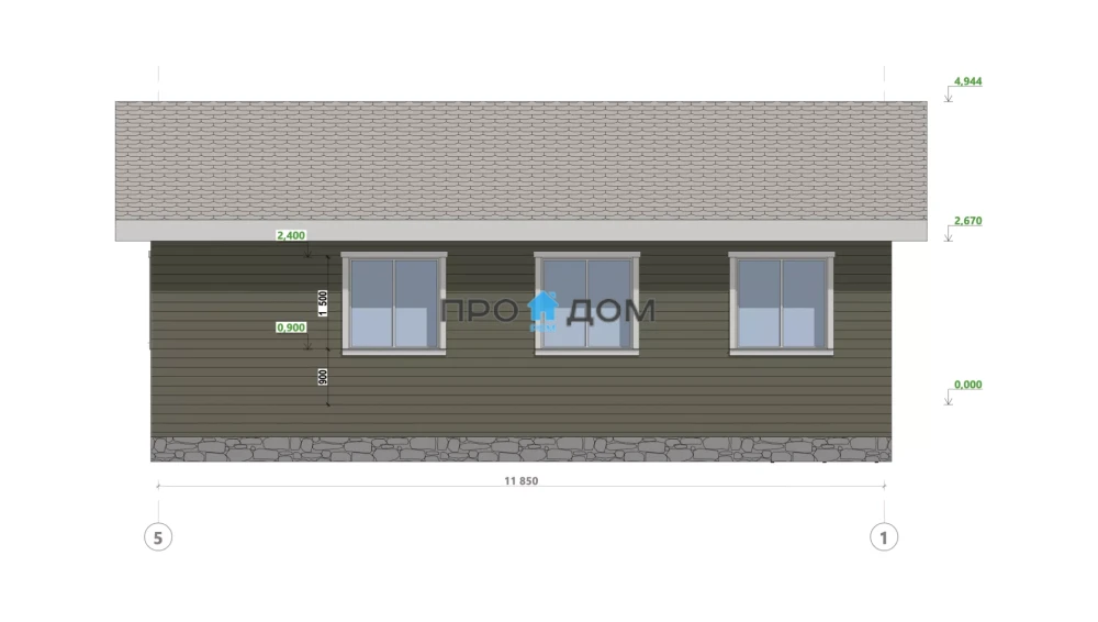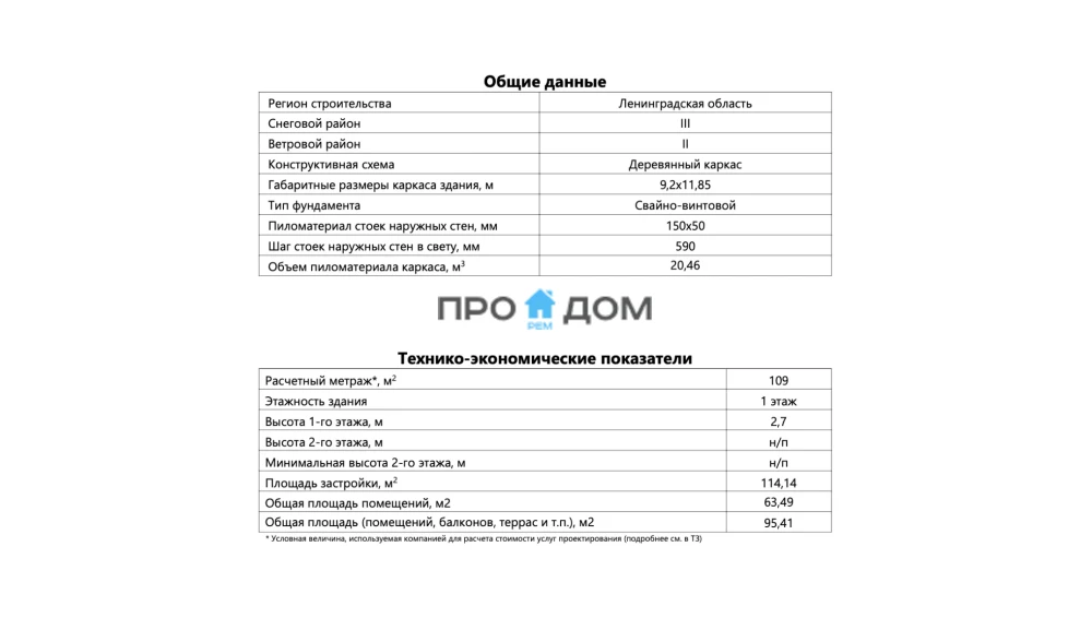 Каркасный одноэтажный дом ПО-547 – прекрасный объект для круглогодичного проживания. Снеговая/ветровая нагрузка уровня 1 этаж делает постройку надёжной в любую погоду. Площадь дома составляет 109 м², что позволит разместить всю необходимую мебель и предметы интерьера. Размеры дома 11.85 x 9.2 м экономят место на участке, чтобы вы могли освоить свободное пространство по своему вкусу.