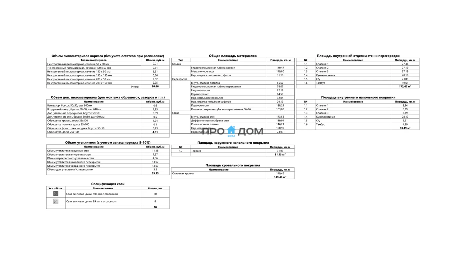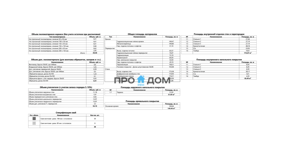 Объем пиломатериала для силового каркаса