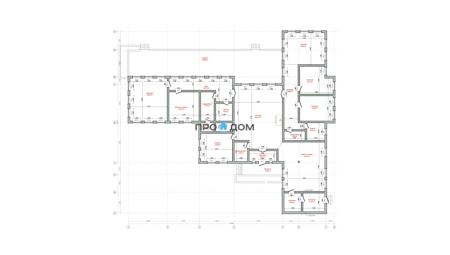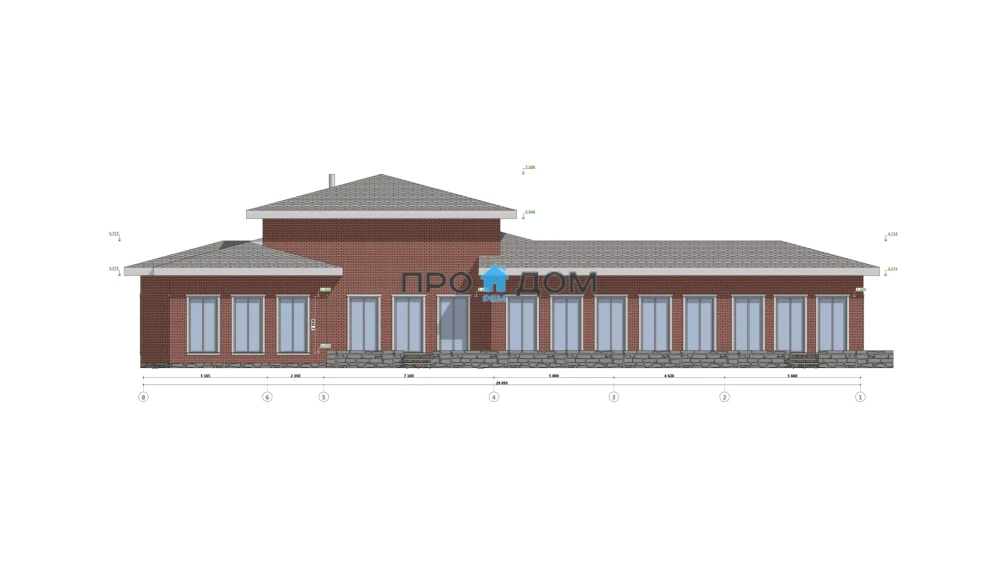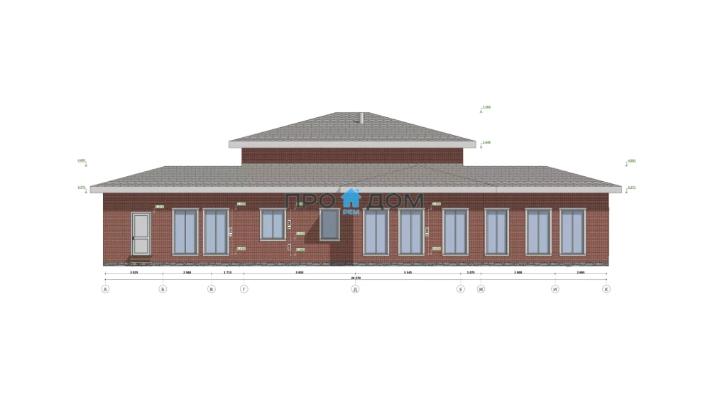 Каркасный одноэтажный дом ПО-510 – прекрасный объект для круглогодичного проживания. Снеговая/ветровая нагрузка уровня 1 этаж делает постройку надёжной в любую погоду. Площадь дома составляет 539 м², что позволит разместить всю необходимую мебель и предметы интерьера. Размеры дома 29.90 x 26.37 м экономят место на участке, чтобы вы могли освоить свободное пространство по своему вкусу.
