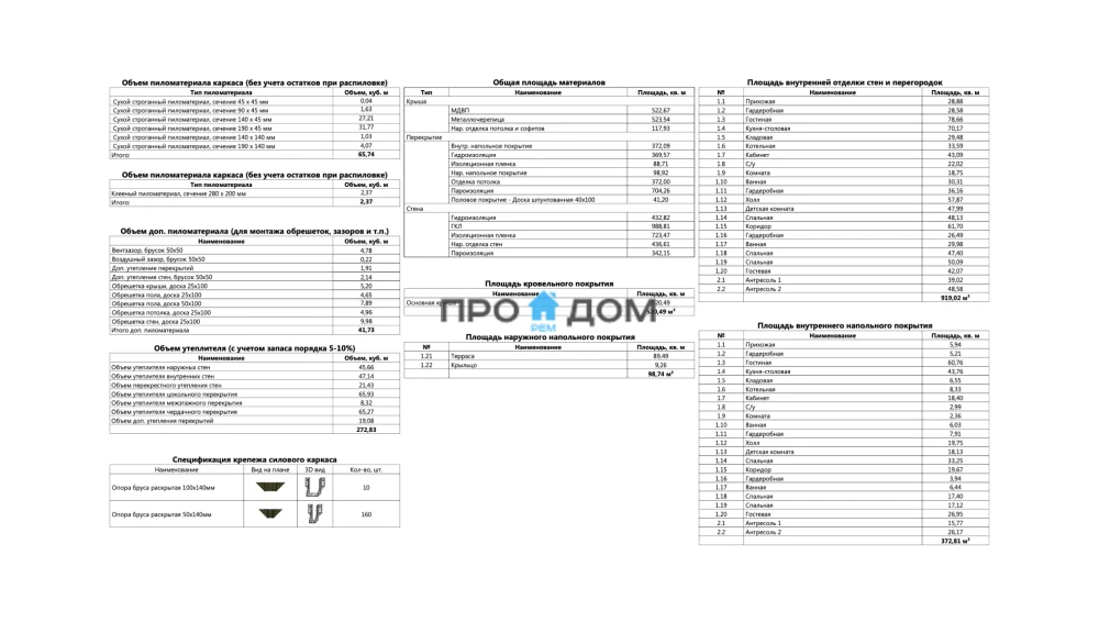 | Каркас наружных стен | деревянные стойки с проектным шагом, снаружи закрыты ветроизоляцией, внутри — без чистовой облицовки, готовые под отделку. |