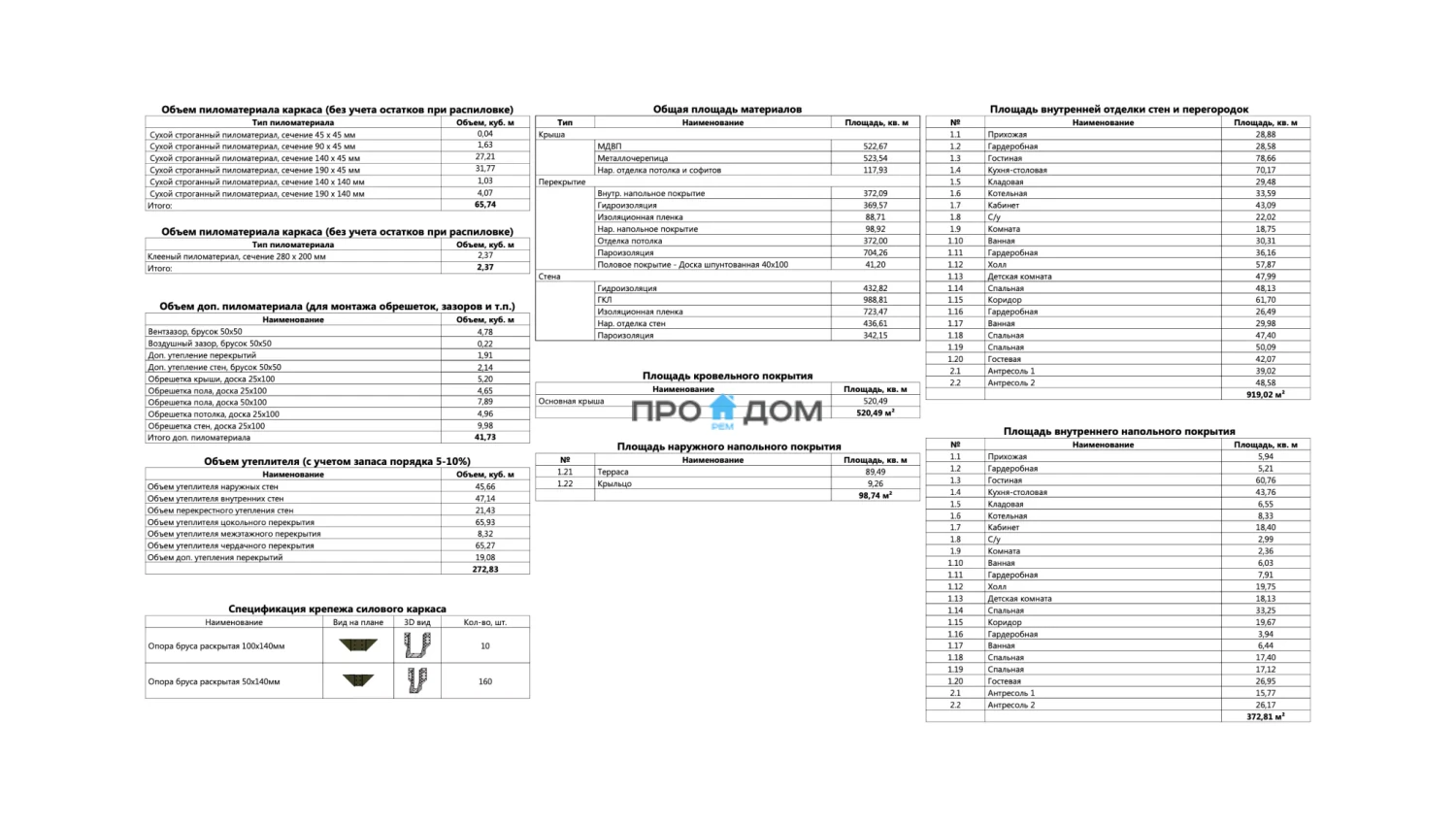 | Внутренние перегородки | каркас из доски с заполнением звукоизоляцией, обшивка черновая либо в один слой под последующую отделку. |
