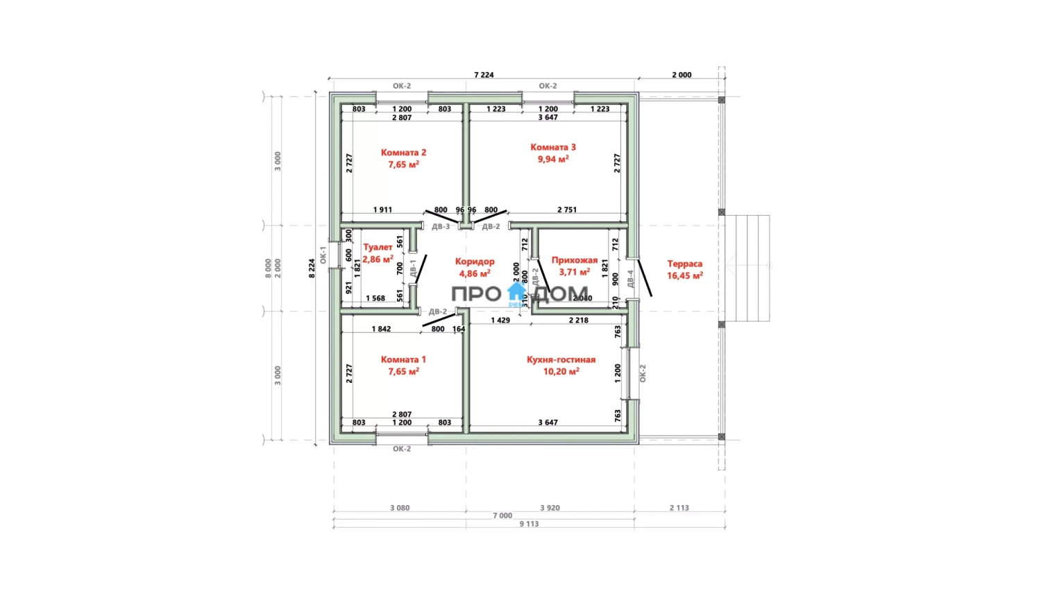 Каркасный одноэтажный дом ПО-217 – прекрасный объект для круглогодичного проживания. Снеговая/ветровая нагрузка уровня 1 этаж делает постройку надёжной в любую погоду. Площадь дома составляет 74 м², что позволит разместить всю необходимую мебель и предметы интерьера. Размеры дома 9.0 x 8.0 м экономят место на участке, чтобы вы могли освоить свободное пространство по своему вкусу.