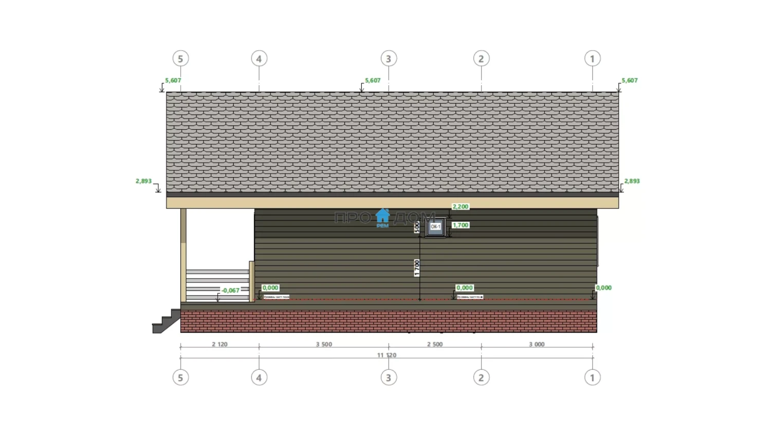 Сечение стоек наружных стен каркаса