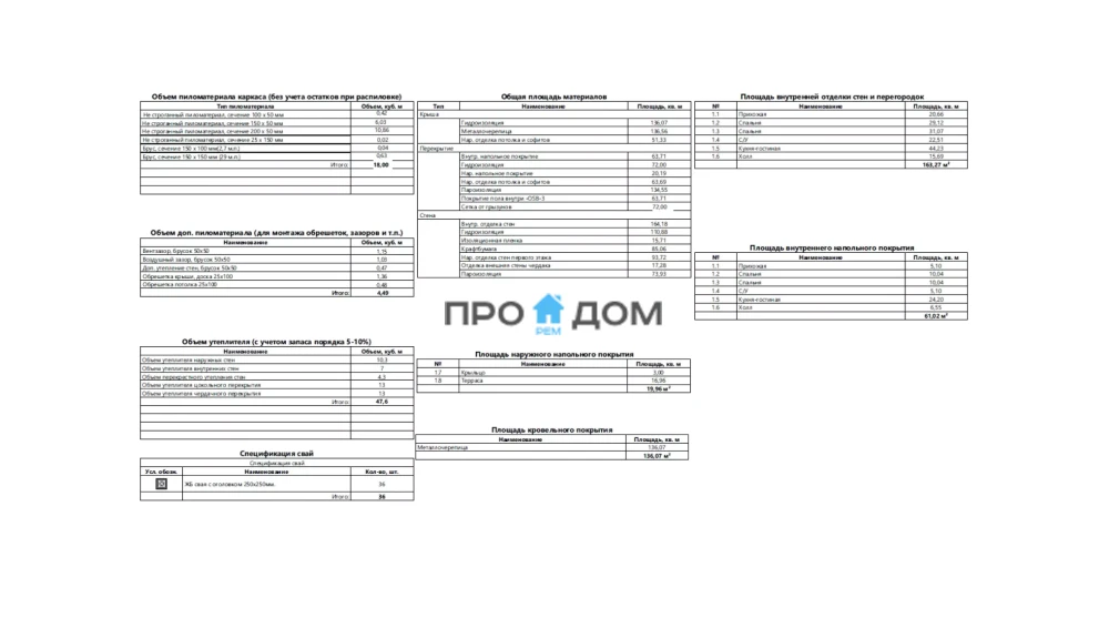 Объем пиломатериала для силового каркаса