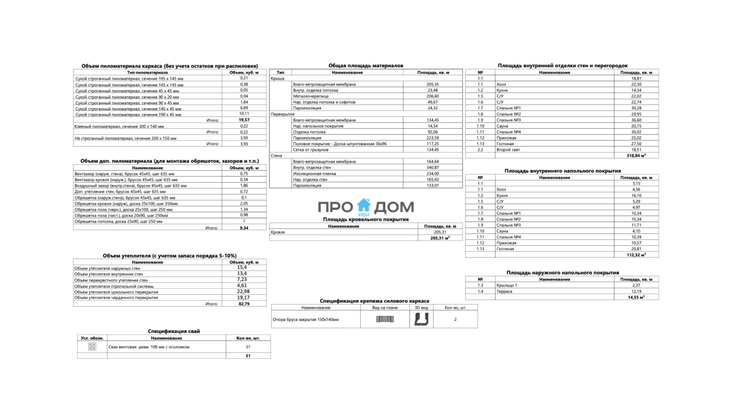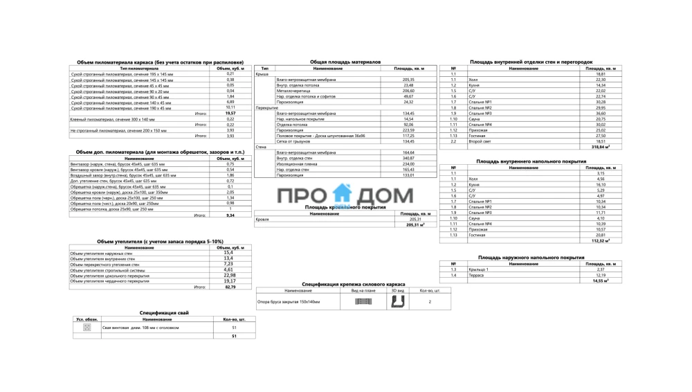 Объем пиломатериала для силового каркаса