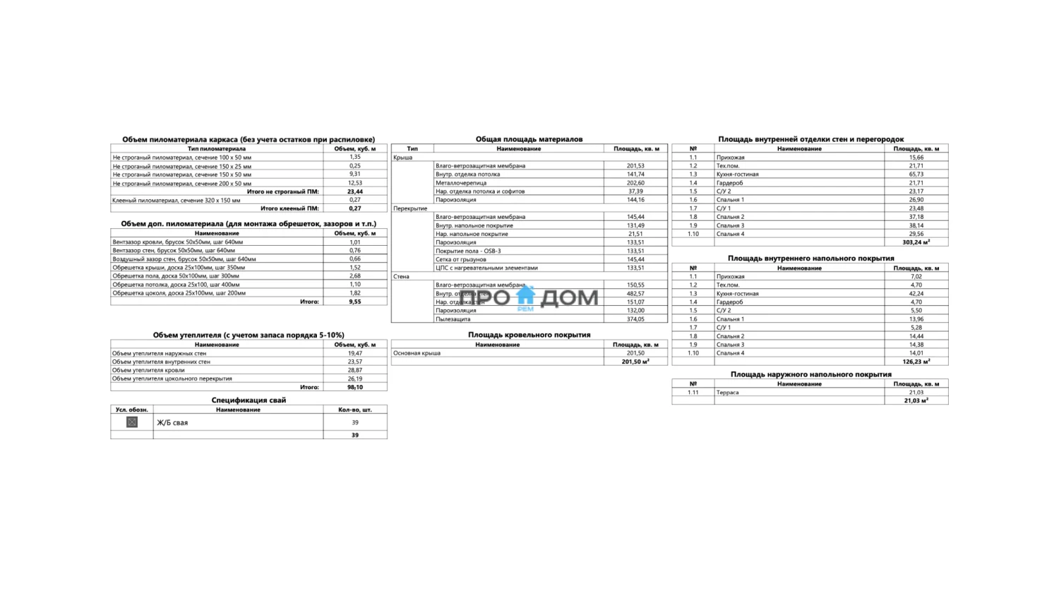 Объем пиломатериала для силового каркаса