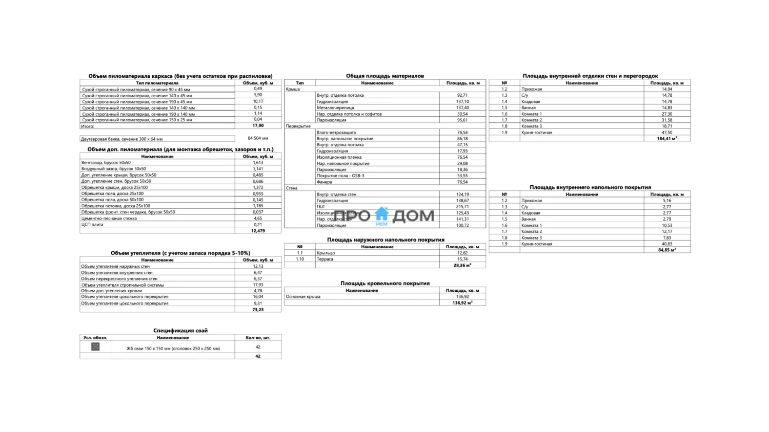 Объем пиломатериала для силового каркаса