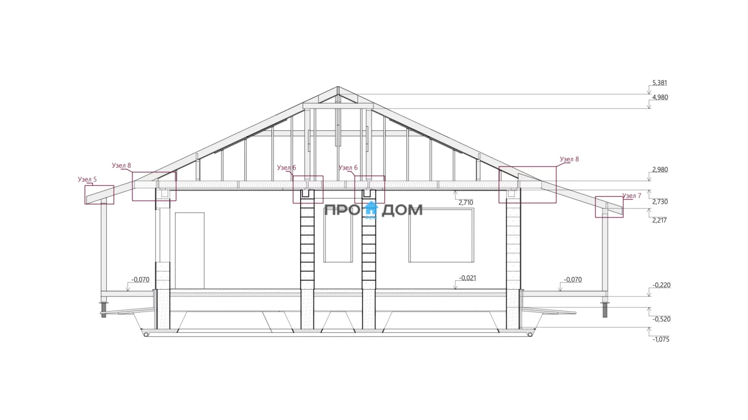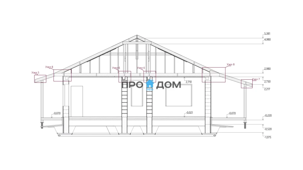 | Кровля | стропильная система с гидроизоляционной мембраной, контробрешеткой и обрешеткой, с монтажом кровельного покрытия по выбранному типу. |